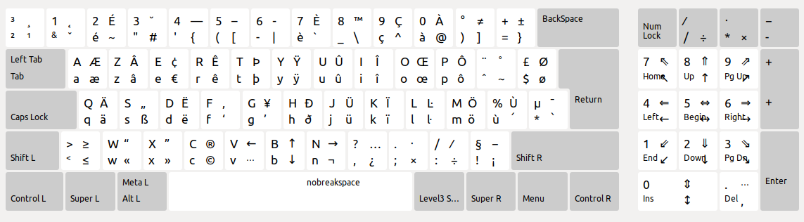 Tout ce qui est dans cet article se base sur l’excellent layout « Français (variante) » disponible sur toute bonne distribution Linux.